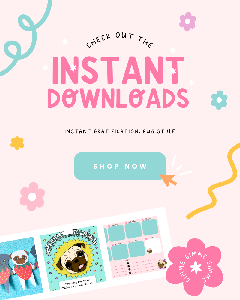 Instant gratification, pug style. Shop instant download printables now!