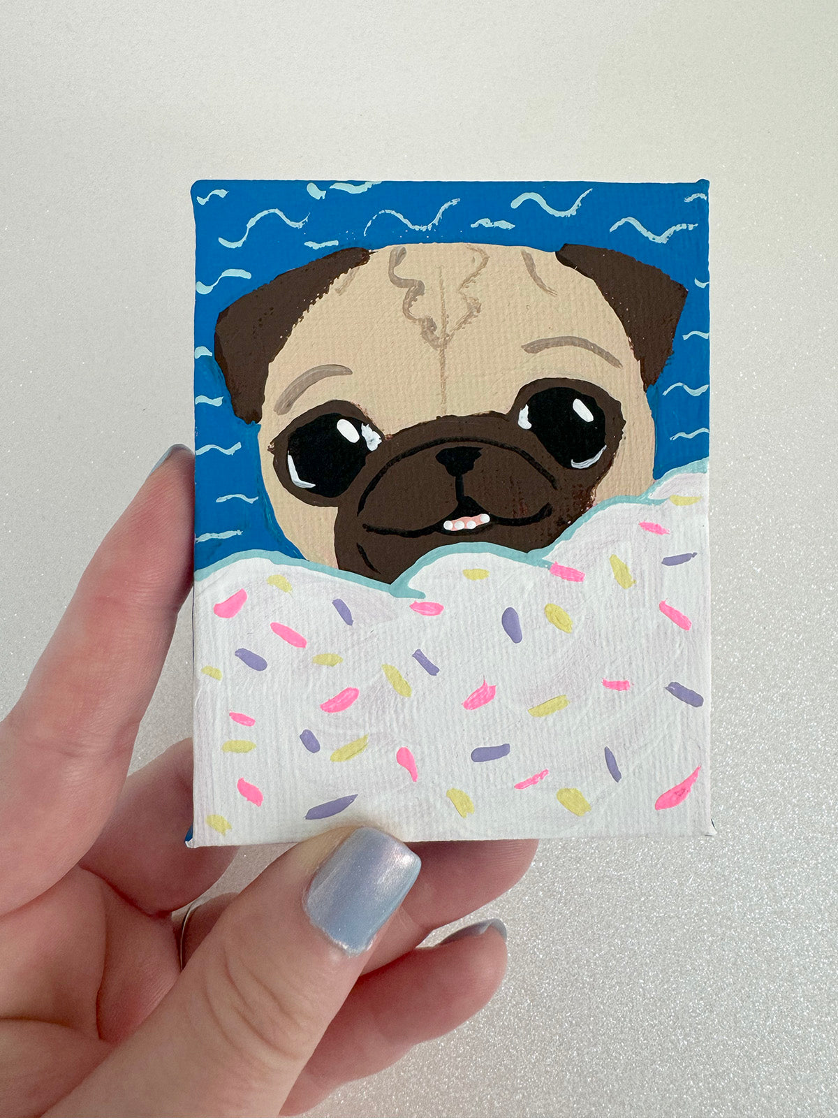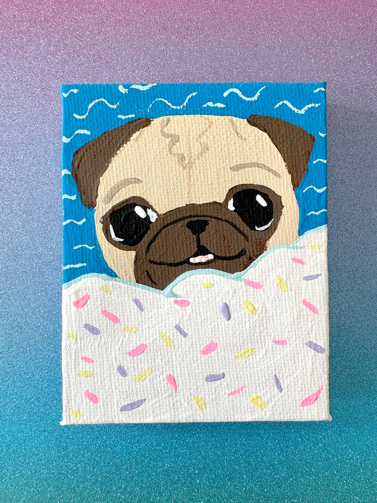 ☆ Carefully wrapped in colorful tissue, these paintings are an exquisite treat for yourself... or they make a perfect gift for the special pug lover in your life!