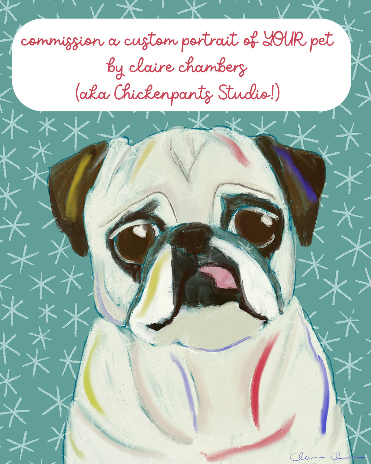 - Optional, but fun: I will post your finished portrait (tagging you, if you wish!) to my Instagram (@chickenpants).