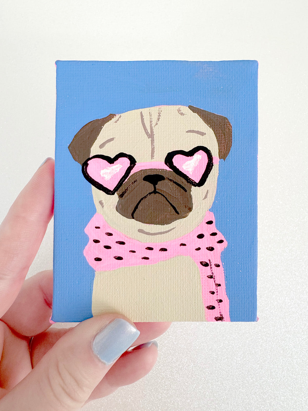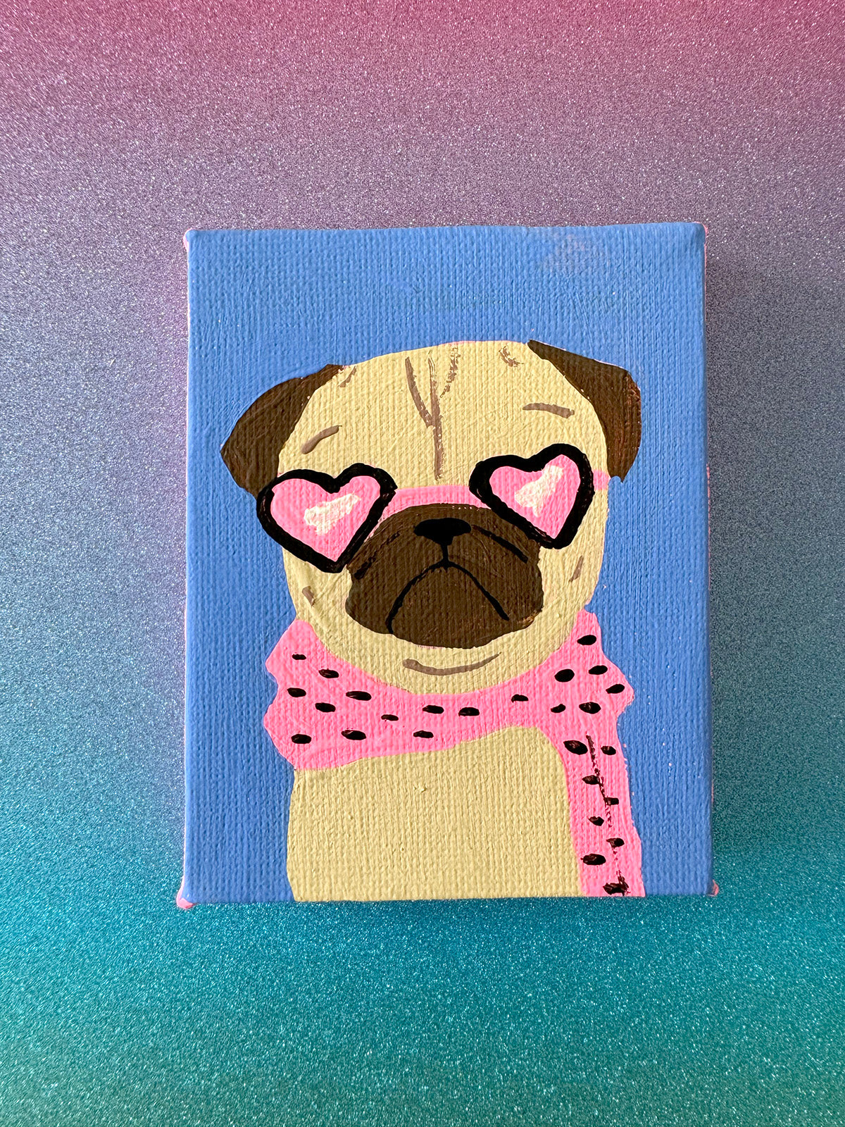 ☆ Carefully wrapped in colorful tissue, these paintings are an exquisite treat for yourself... or they make a perfect gift for the special pug lover in your life!