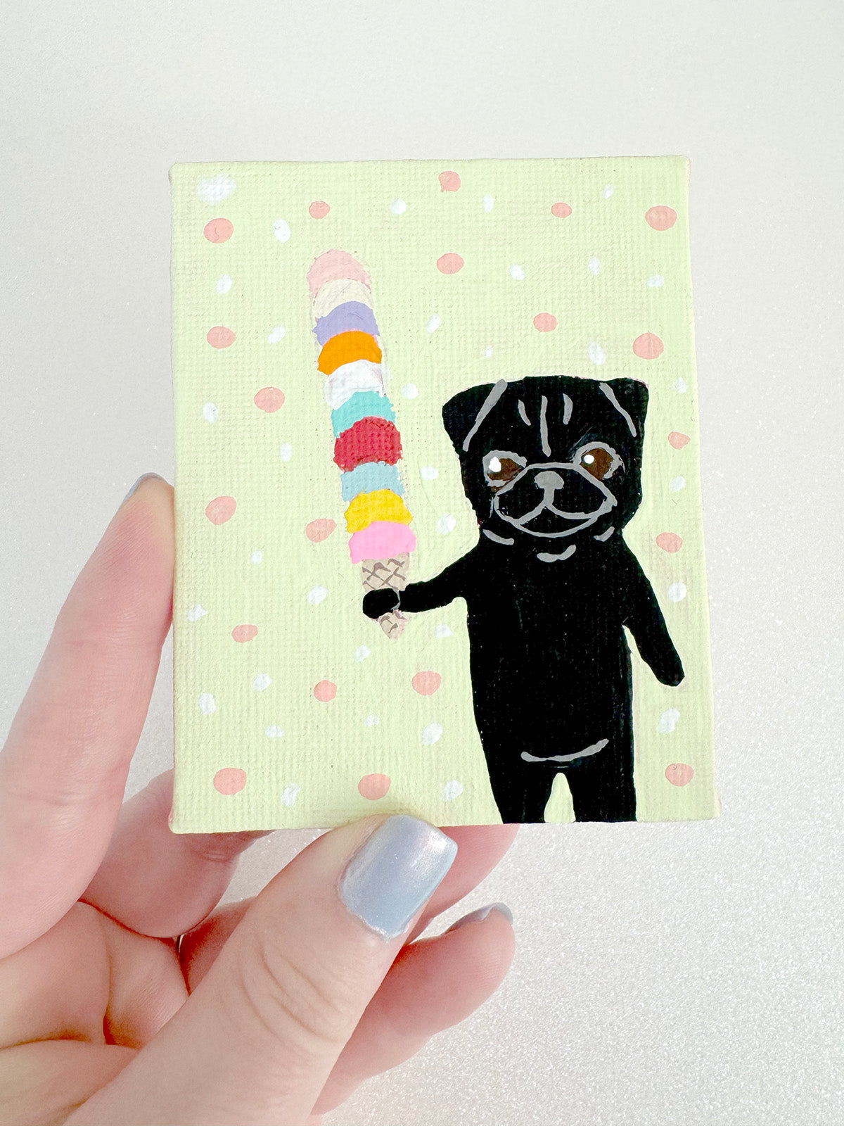 ☆ Carefully wrapped in colorful tissue, these paintings are an exquisite treat for yourself... or they make a perfect gift for the special pug lover in your life!