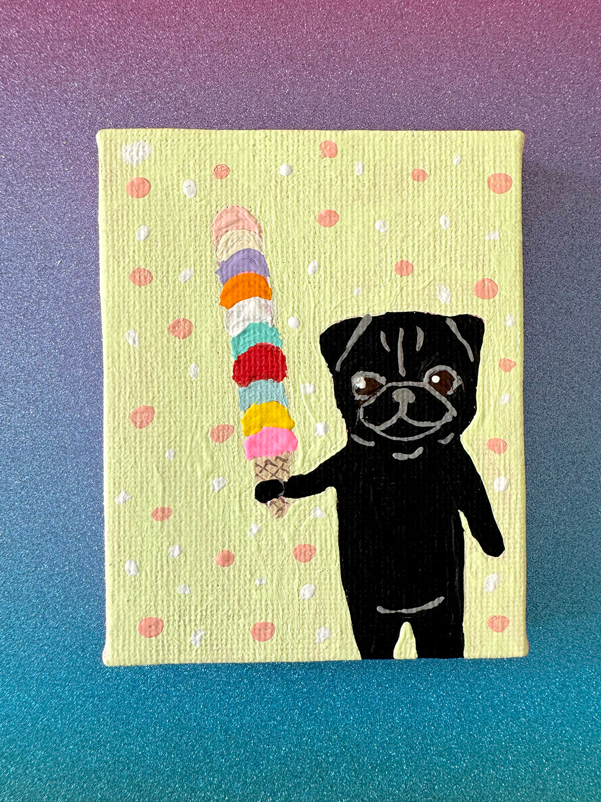Imagine an ice cream cone, heaped high with every flavor, each one more delicious than the last... That's what this pug's got!