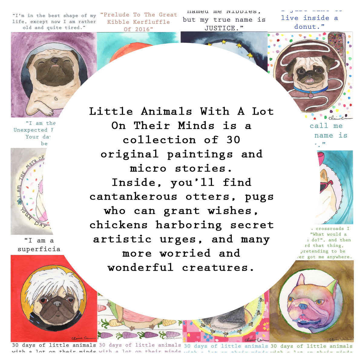 Cantankerous otters. Pugs who can grant wishes. Chickens harboring secret artistic urges. You'll find all these worried and wonderful little creatures and more inside Little Animals With A Lot On Their Minds!