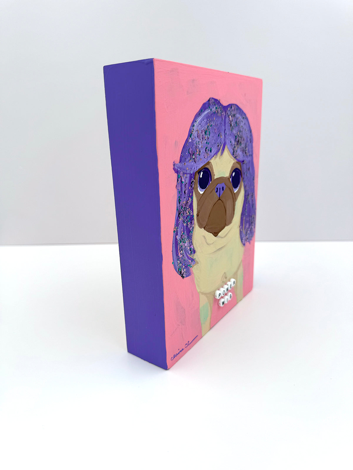 ☆ It features a glittering purple wig! And hand set letter beads spelling out "POWER WIG".