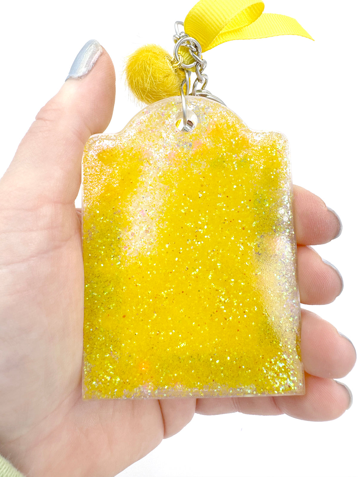 ☆ This is an original cast resin bag charm made by me. It's the only one in the whole world! Each one is totally unique, and features a little micro print of one of my paintings, a bow, extra little charms, and a joyful sprinkle of glitter!