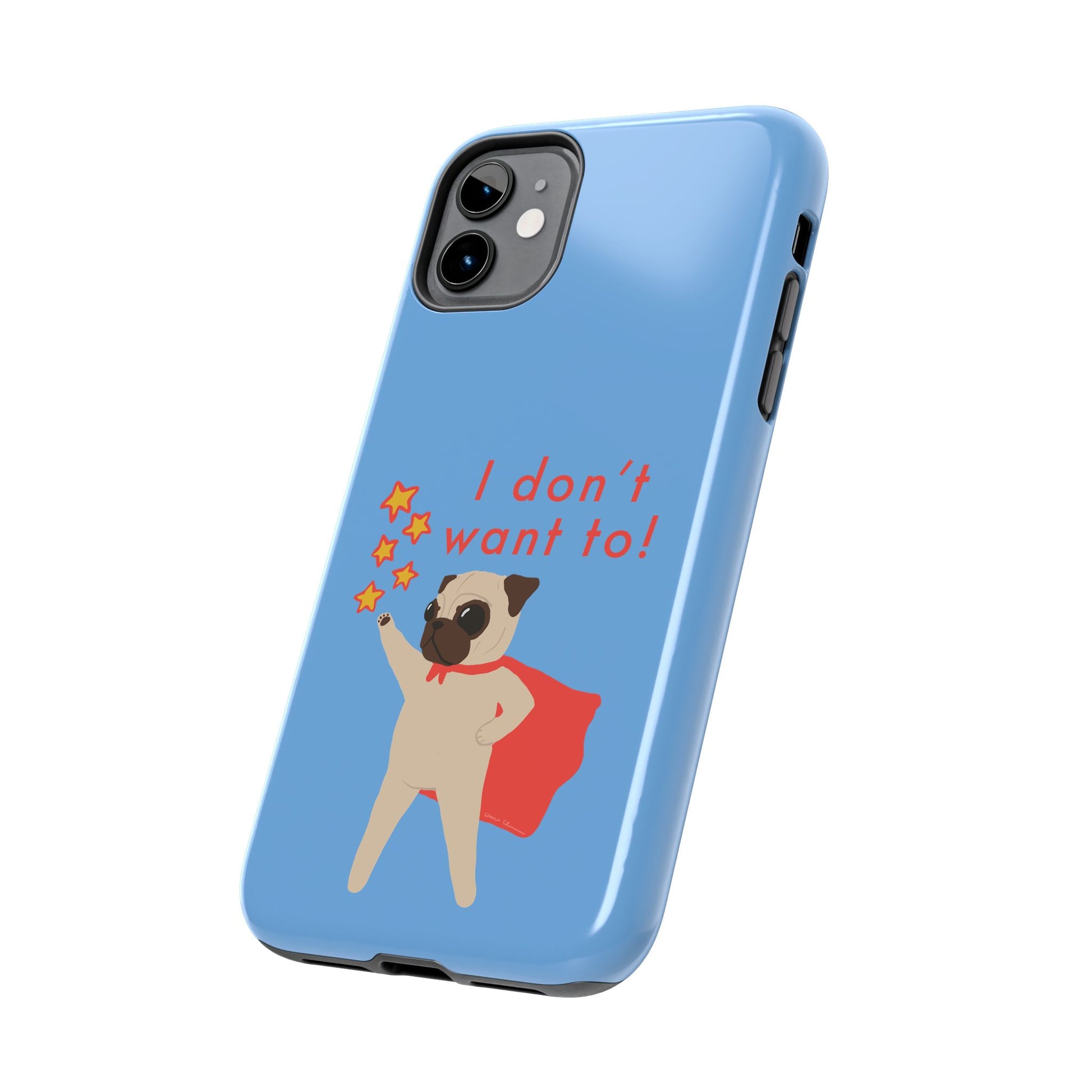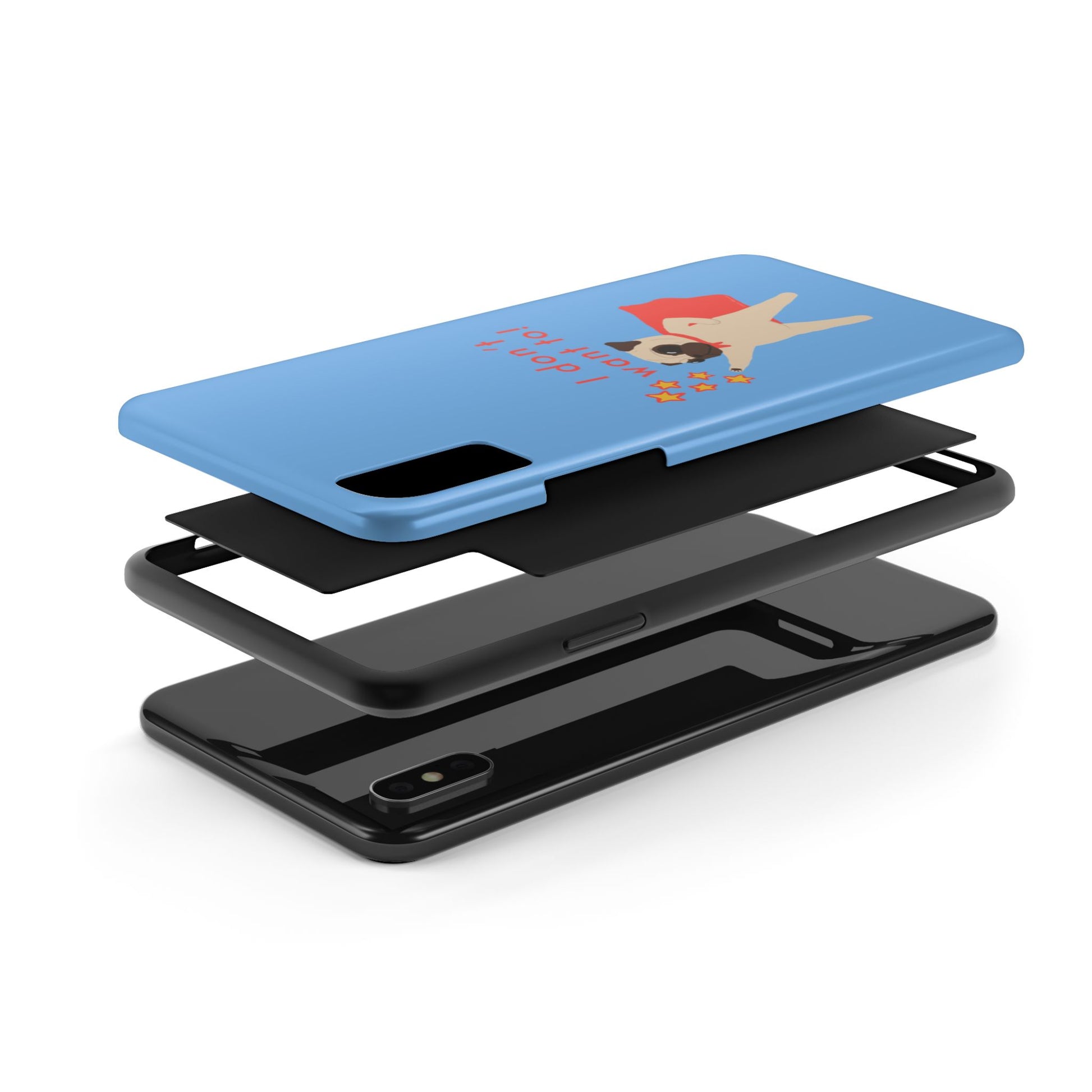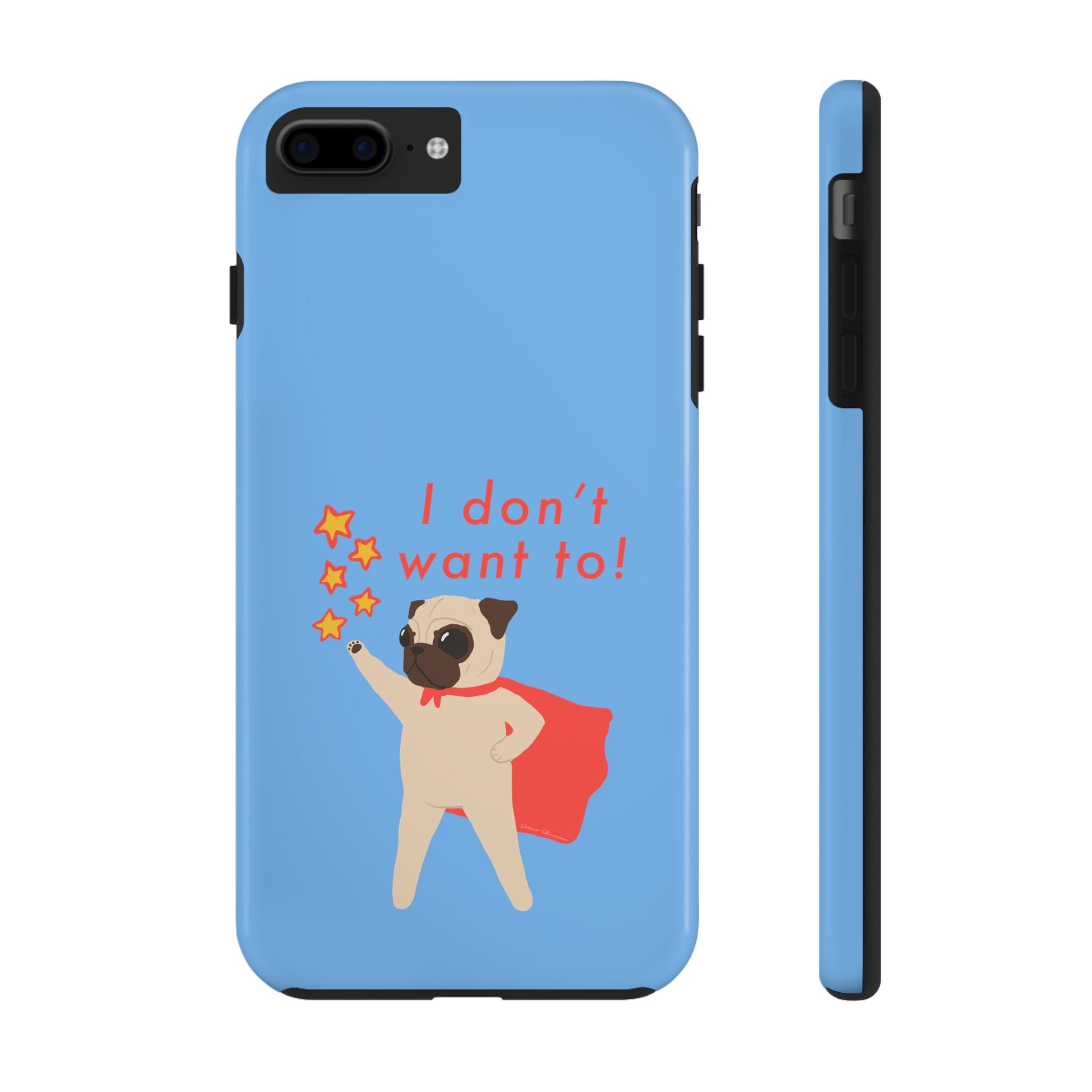 Superhero Pug Tough Phone Case - "I Don’t Want To!"