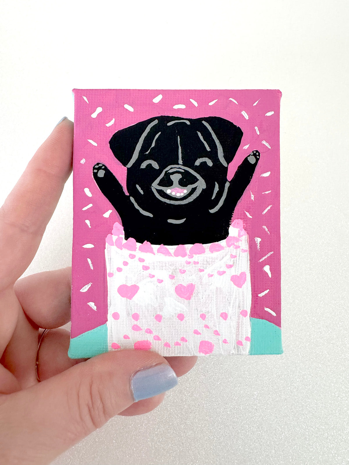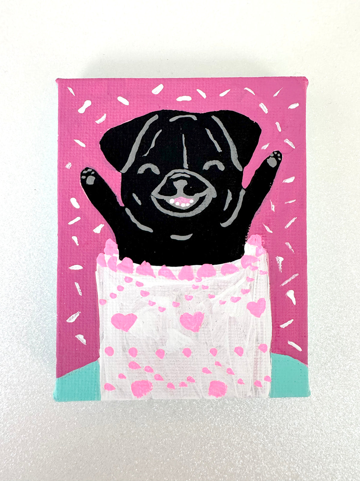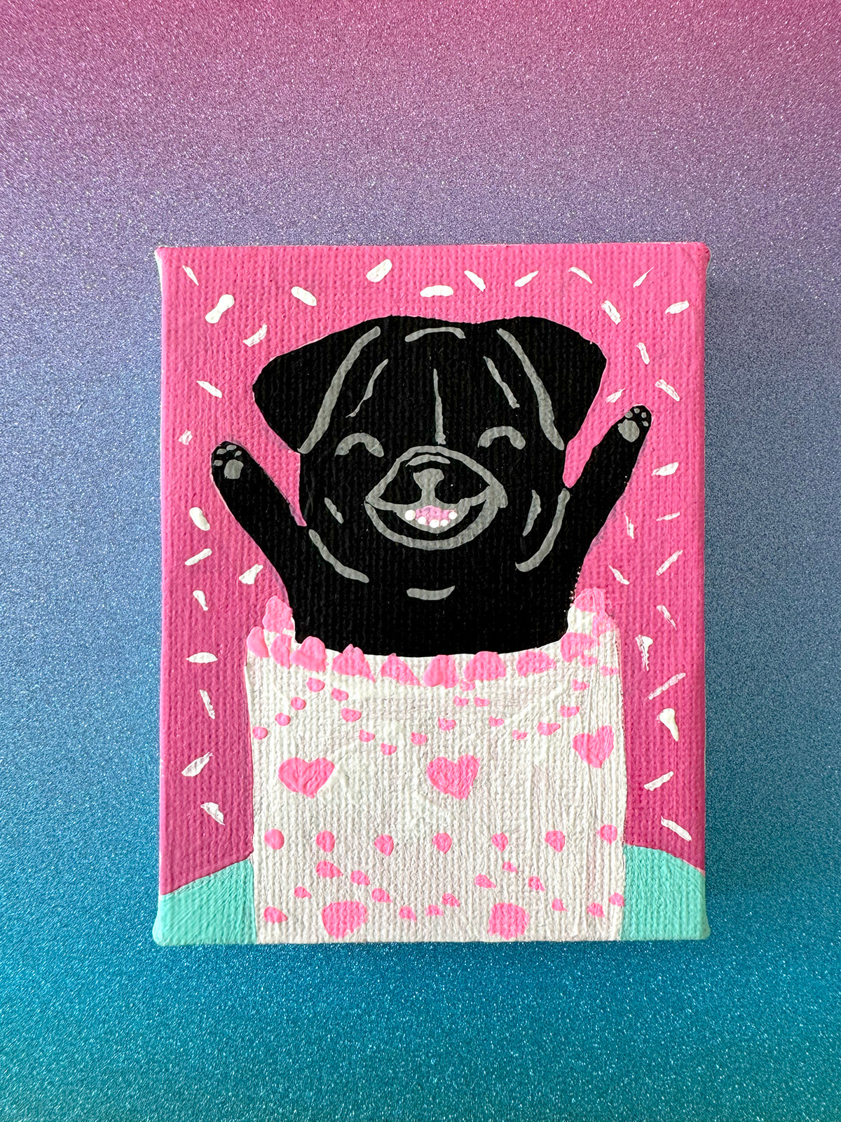 ☆ Carefully wrapped in colorful tissue, these paintings are an exquisite treat for yourself... or they make a perfect gift for the special pug lover in your life!