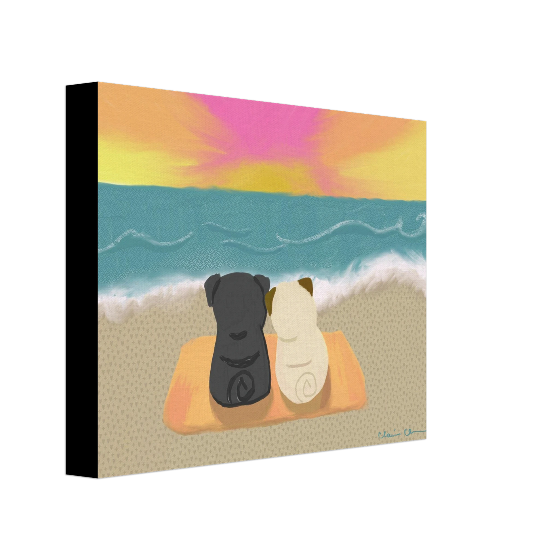 Sweet Beach Pugs Sunset - Deep Sided Canvas Print – Heartwarming Art for Animal Lovers