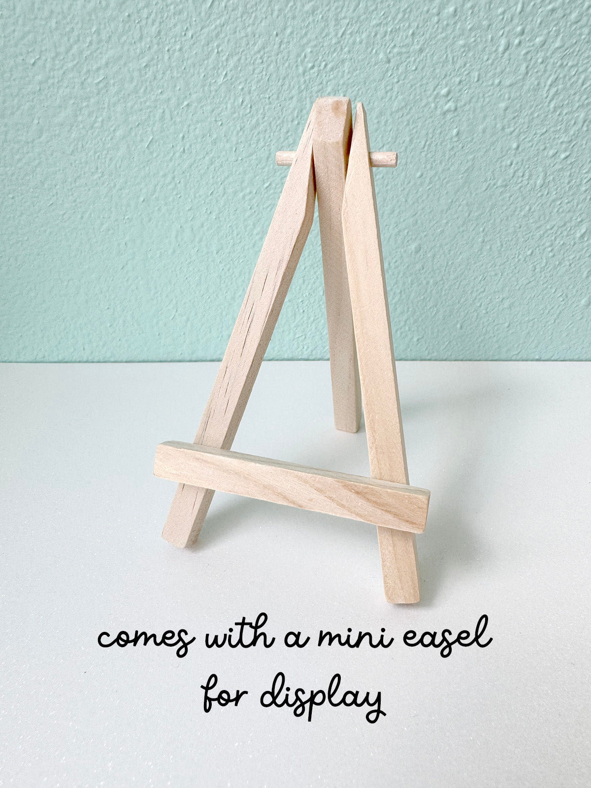 ☆ It's painted on a teeny tiny stretched canvas. The edges have been painted to complement the painting.