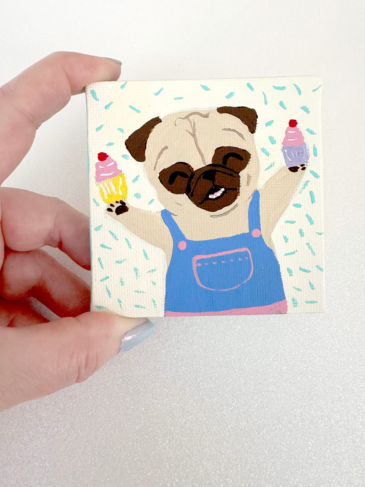 ☆ Carefully wrapped in colorful tissue, these paintings are an exquisite treat for yourself... or they make a perfect gift for the special pug lover in your life!